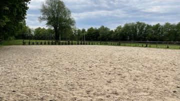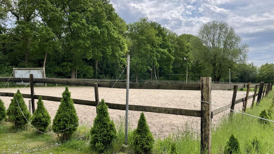 De rijbak is voorzien van een goede zandlaag, heeft een nette houten omheining en is voorzien van verlichting. De rijbak is ca. 28 bij 40 m. Om de rijbak zijn kleine (kerst)boompjes geplant. Naast de rijbak is een bron gespoten welke is voorzien van een pomp voor o.a. het beregenen van de rijbodem.