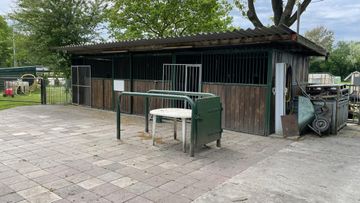 Achter deze schuur zijn drie buitenstallen aanwezig welke zijn voorzien van een dak met asbestvrije golfplaten.