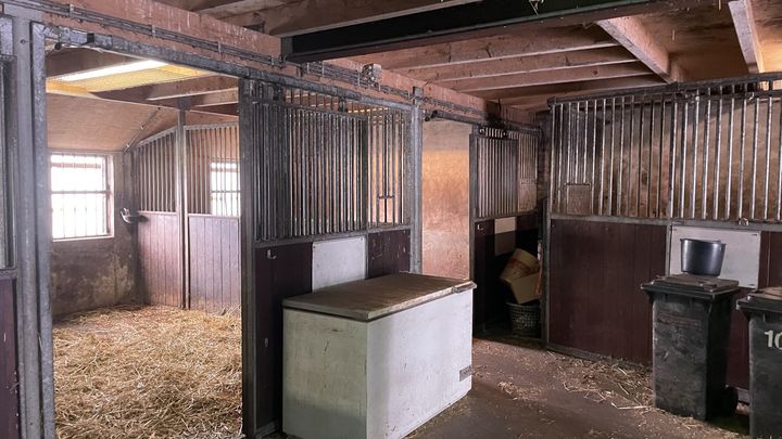 Een uniek object met ruime schuur, paardenstallen, rijbak en weiland. Totaal groot 02.14.83 hectare